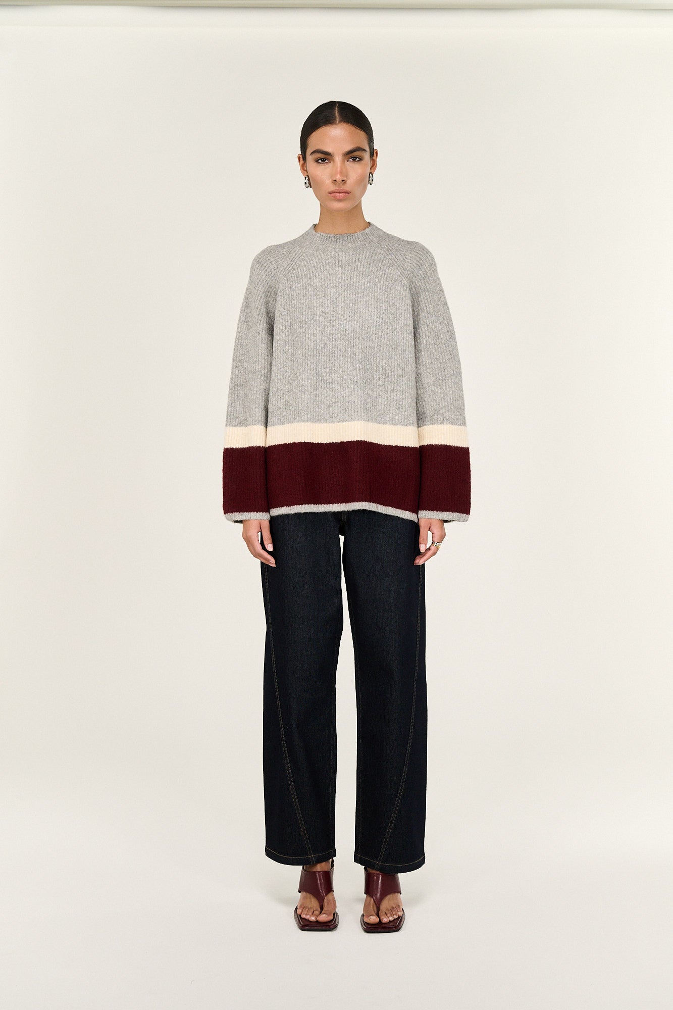 A staff favourite in store, the Elva Raglan Jumper from Staple the Label is a no brainer this autumn. With a nod to trending burgundy and grey marle, this striped rib knit will work back with denim on the weekend, take you to work with some sharp black bottoms, then out with the girls with the burgundy Townie Pants. Don't miss her!
