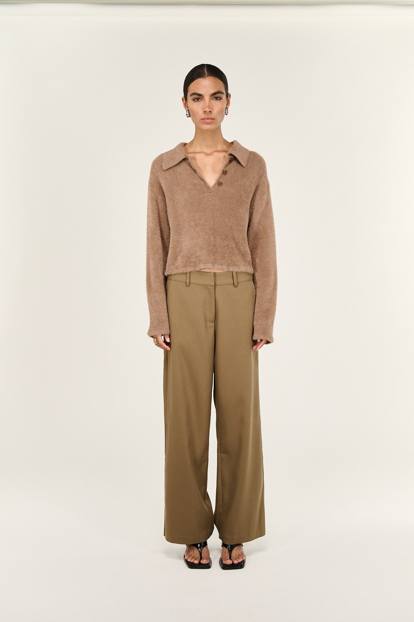 Soft! So soft! The Ember Fluffy Polo Jumper is the one to reach for if you're a texture girl - she's soft, fuzzy and guaranteed to keep you cosy this cold season. Team her with some barrel jeans - her cropped hem should balance any wider bottoms nicely! And that neutral tone will go with everything!